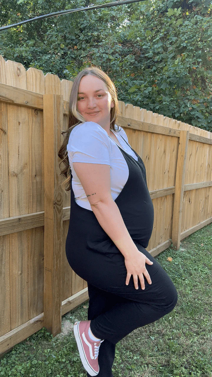 "Finding clothes that fit during pregnancy has been tough, but this jumpsuit is a game changer. It's so comfortable and grows with me. I wear it all the time because it just feels like it's made for me."